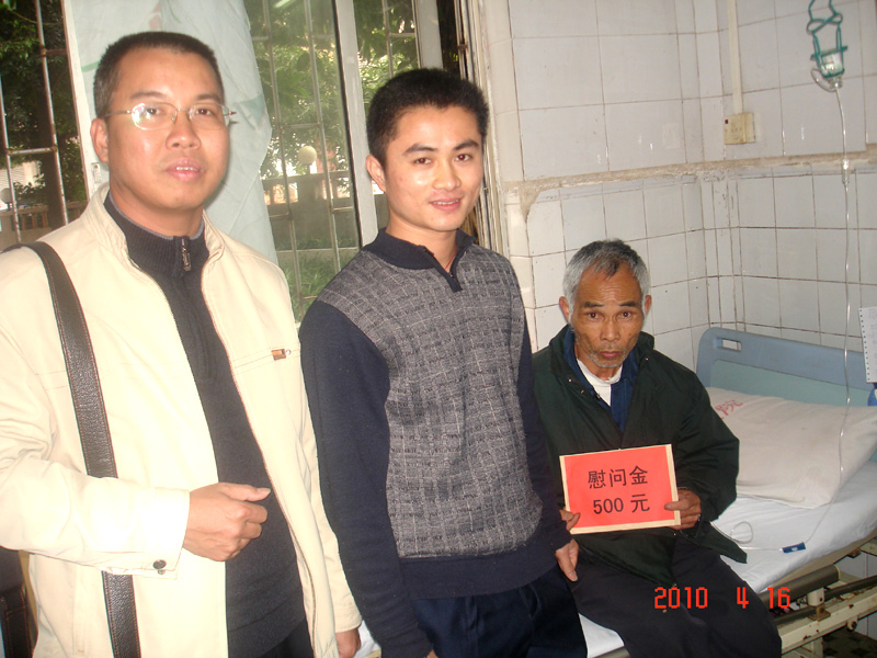 基建处和校医院帮扶小组心系帮扶农户,积极做好扶贫开发“规划到户责任到人”工作。广宁县古水镇三坑村大洞田队黄家声是基建处和校医院帮扶小组的帮扶对象,在得知黄家声因病住院后,该帮扶小组委派基建处党支部书记谢海柱同志一行3人,于4月16日到广宁县人民医院探望住院病人并送上慰问金,在医院里和黄家声就帮扶措施达成了一致意见。