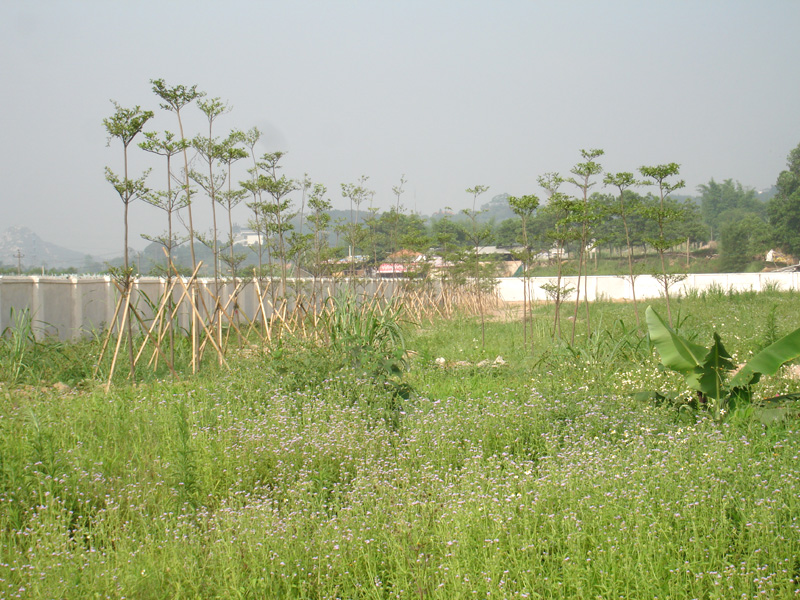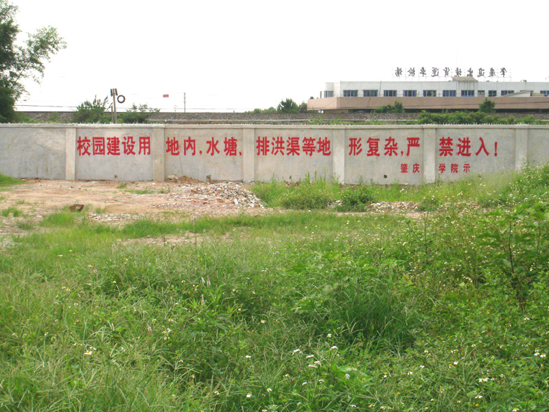 经过填水塘、平整土地后,全长315米的西区新征地一期施工围墙全面建成,并设置了安全警示标语。它的建成对学校的土地规划和安全保卫有着重要的作用。 为进一步完善西区的绿化工作,学校于今年三月份专门组织学生开展植树活动,在新建施工围墙边分别种上了小叶榄树和小叶桉树。如今,围墙周围绿意盎然,呈现出一派生机勃勃景象。