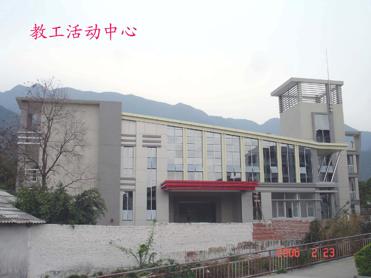 位于学校体育馆东侧的教工活动中心(见下图)已于2006年1月竣工验收。该活动中心由广州市建筑置业公司承建,楼高三层,建筑面积2840平方米。活动中心设有:乒乓球室、棋牌室、台球室、老年活动室和卡拉OK舞厅等活动场所。