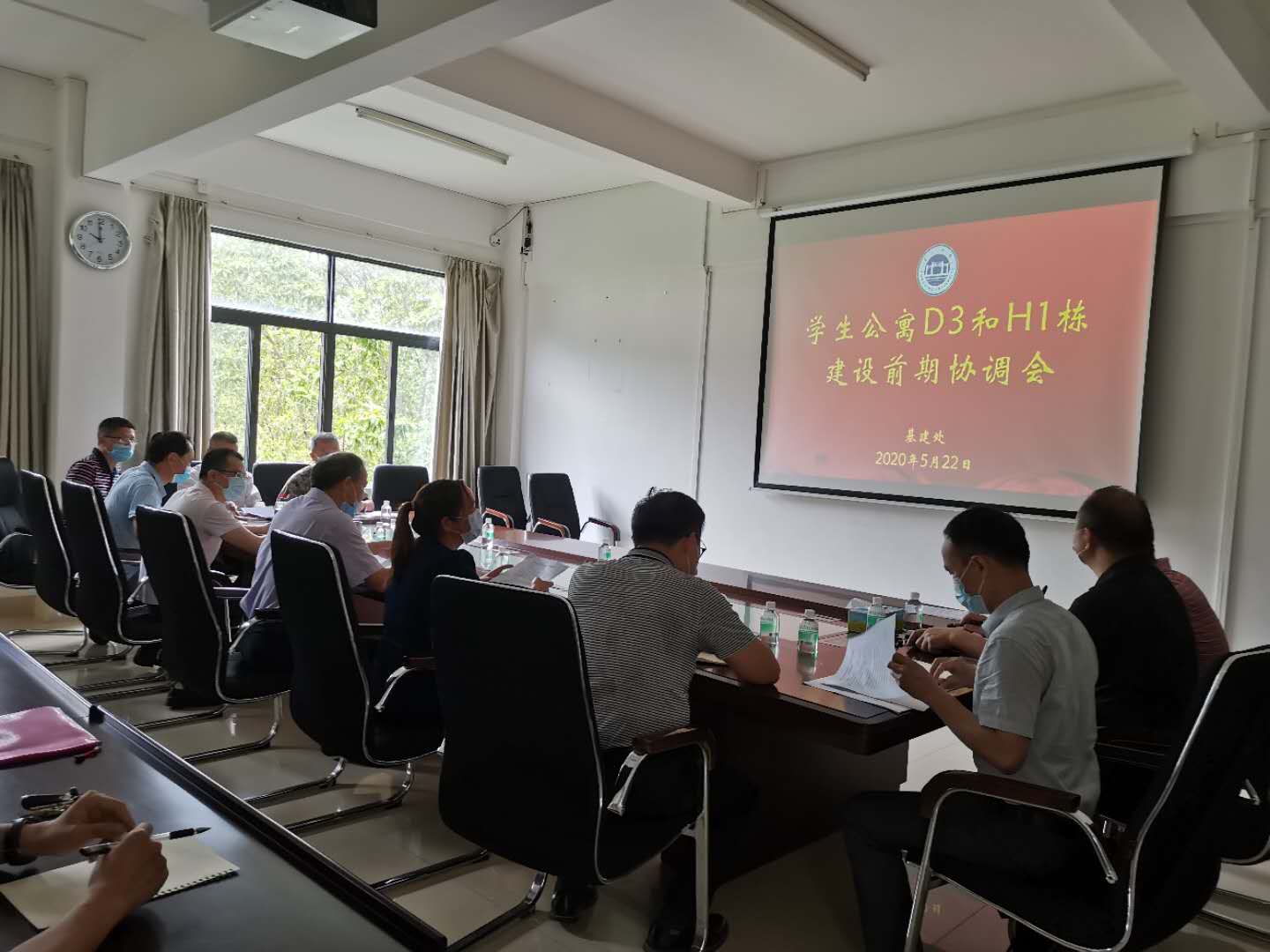会上,院办谭主任介绍学生宿舍D3、H1栋是Bwin必赢中国官网“提毛”项目的重点建设工程,必须在 2021 年 8 月底前全部完成并投入使用,建设工期非常紧迫。因此,在工程设计、施工过程中希望得到各部门的全力支持,共同完成学生宿舍的建设任务。